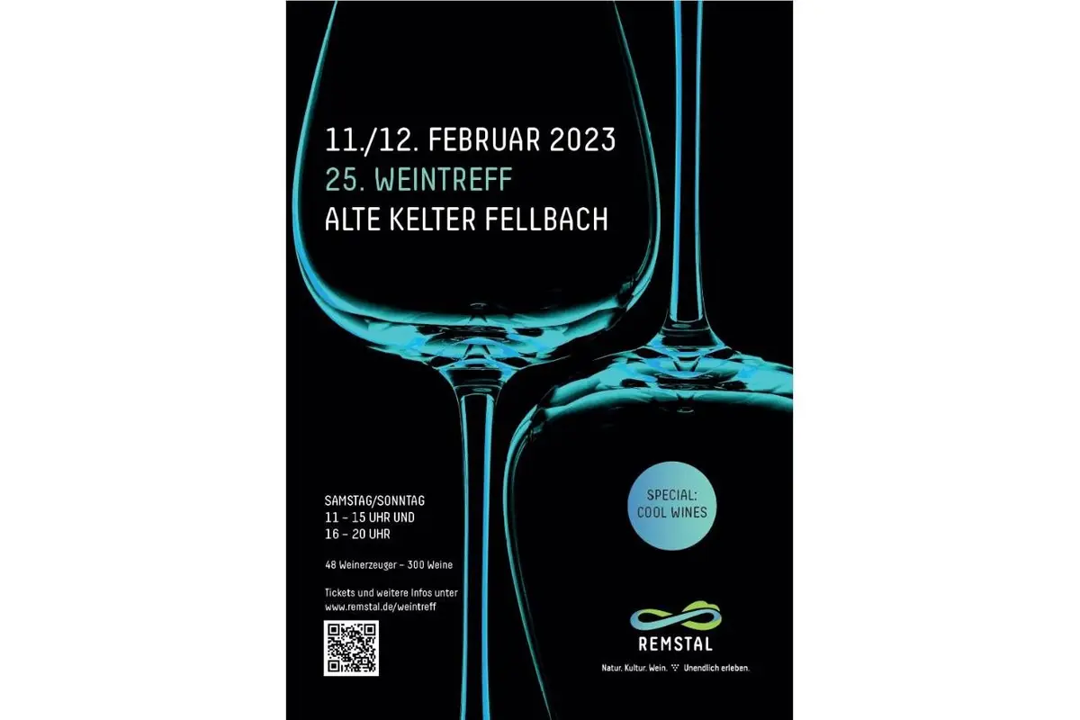 Ein alljährlicher Höhepunkt im Veranstaltungskalender des Remstal Tourismus e.V. ist der Weintreff in der Alten Kelter Fellbach. Bei der 25. Ausgabe am 11. und 12. Februar 2023 präsentieren 48 Weinerzeuger aus der Region Remstal-Stuttgart ihre besten Tropfen unter dem spektakulären Fachwerk der Kathedrale des Weins. Zum Jubiläum dürfen die Besucher:innen sich auf das Special „Cool Wines – Cool climate-Weine aus den höheren Lagen des Remstals“ inklusive kommentierter Weinproben mit der bekannten Sommelière Natalie Lumpp freuen. Zudem wird Safety Car-Fahrer Bernd Mayländer als amtierender „Remstäler des Jahres“ seine Weine präsentieren.