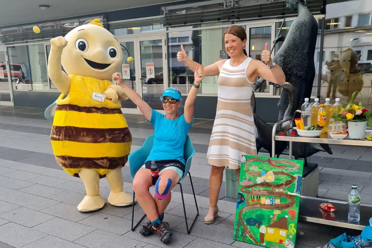 Am Donnerstag, den 17. Juni 2021 startete Steffi Saul um 4 Uhr morgens ihren Spendenlauf für Krebspatienten auf dem RemstalWeg von Fellbach nach Essingen und wieder zurück. Auf den folgenden 244 km mit knapp 5.000 Höhenmetern wurde die Extremsportlerin abwechselnd von Freunden sowie zwei Feuerwehrmännern aus Remseck am Neckar begleitet. Nach etwa 62 Stunden non-stop – aufgrund der Hitzewelle etwas später als geplant – wurde Steffi Saul schließlich am Samstag, 19. Juni, um kurz vor 18 Uhr im Stuttgarter Olgahospital von Frau Dr. Blattmann, Leiterin der Kinderkrebsstation, und Remstal-Maskottchen Remsi empfangen.