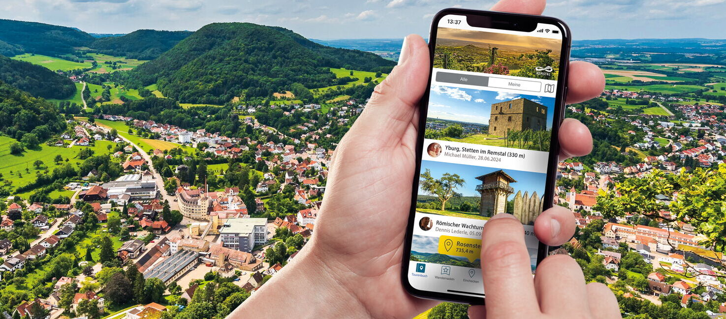 - Im Menü findest du unter dem Punkt „Regionen“ das Remstal. Dieses wählst du aus. Dort siehst du, welche Nadeln es vor Ort gibt und welche Ziele du erreichen musst, um die Nadel zu verdienen. Die Routen führen dich durchs gesamte Remstal, z.B. auf dem RemstalWeg oder dem Remstal-Radweg. Darüber hinaus erwarten dich zahlreiche weitere Touren, die kontinuierlich erweitert werden. Gleichzeitig behältst du den Überblick darüber, welche Ziele du bereits besucht hast, wie viele Punkte du gesammelt hast und welche dir noch fehlen.